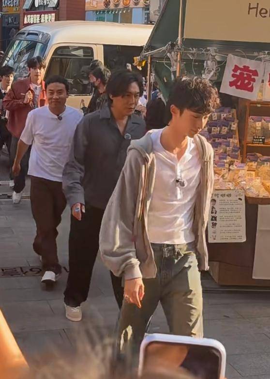 然后最新的消息,就今天,10月15号,好多人在成都一个叫东郊的地方,碰到了秦昊他们,好像是在录一个叫《快乐趣吹风》的节目,同行的还有大张伟和徐志胜,好玩的是,恩利也在里面,这下换继父来带了。